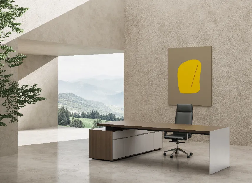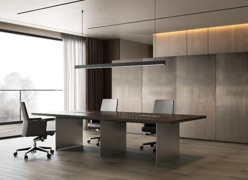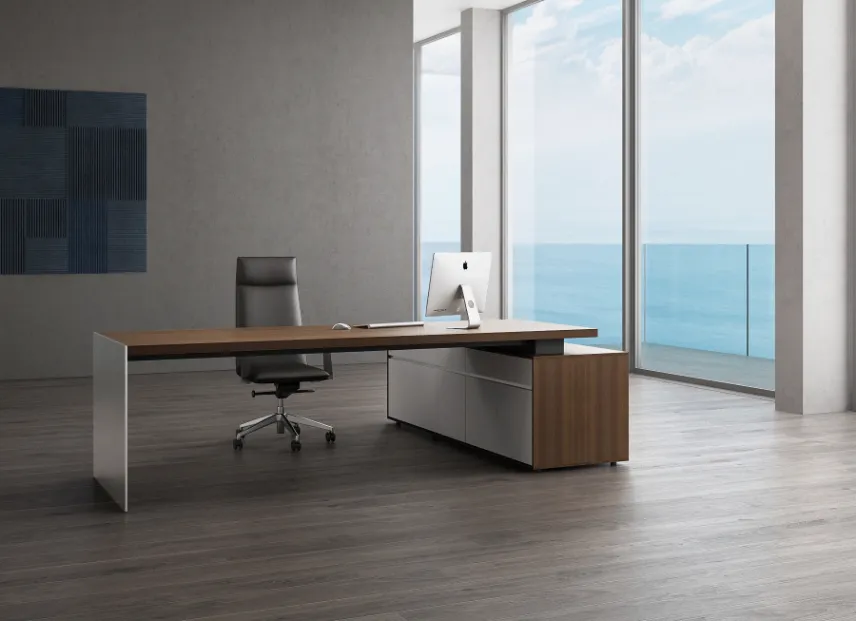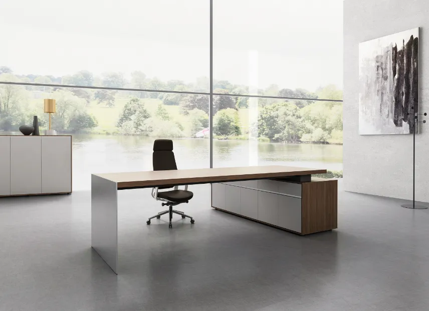 يجسد مكتب ميتالي التنفيذي توازنا مذهلا بين القوة المعدنية الصلبة والأناقة الديناميكية ، مما يقدم مظهرا أنيقا ومتطورا.