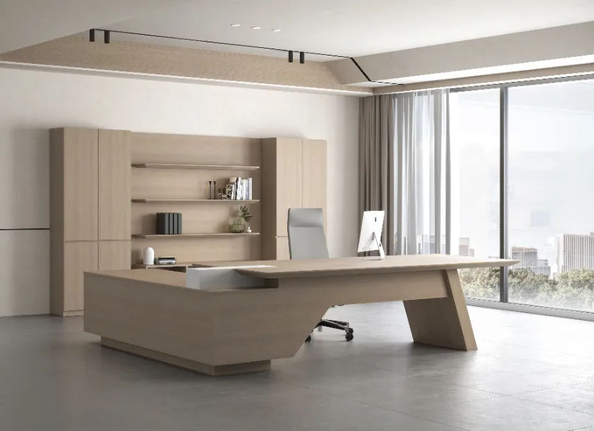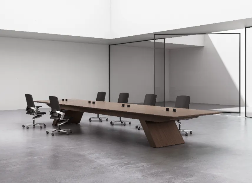 تتميز المكاتب التنفيذية وطاولات المؤتمرات بحرفية مشطوفة ، مما يقلل من الثقل البصري ويعزز جاذبيتها المعاصرة.