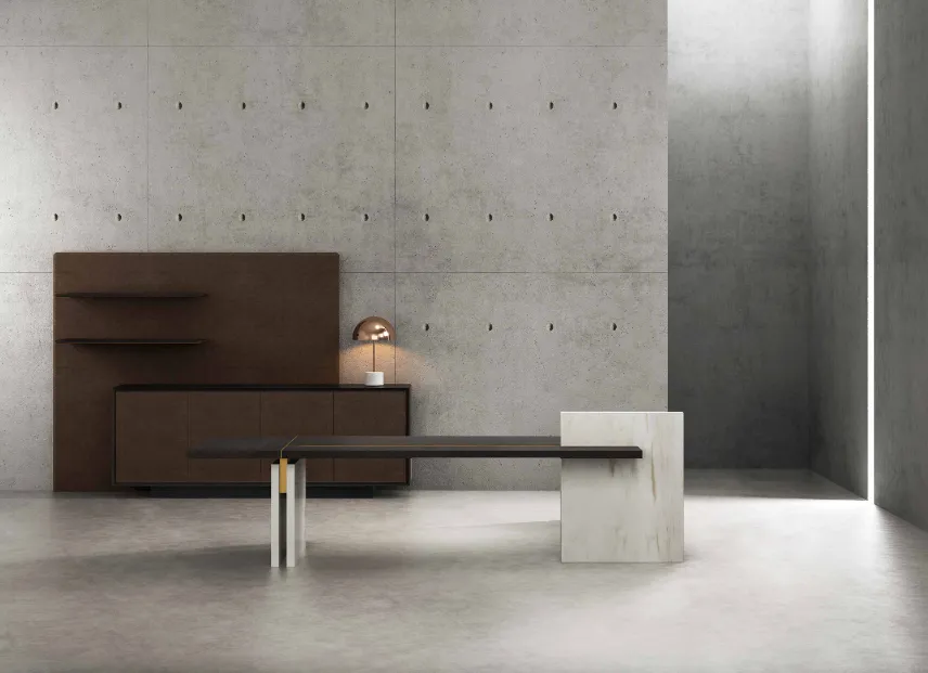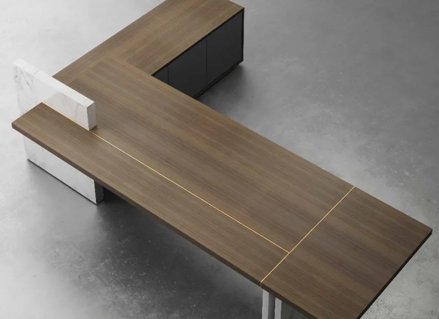 صنعت هذه السلسلة من مزيج متناغم من الخشب الصلب والجلد الفاخر والحجر الملبد والنحاس الأصفر ، وتجسد رؤية جديدة للتصميم الشرقي. يتم تحسين كل التفاصيل بعناية—مثل نظام إدارة الكابلات المخفي ، الذي يدمج الأسلاك بكفاءة لإنشاء مساحة عمل أنظف وحرية أكبر في الاستخدام اليومي.