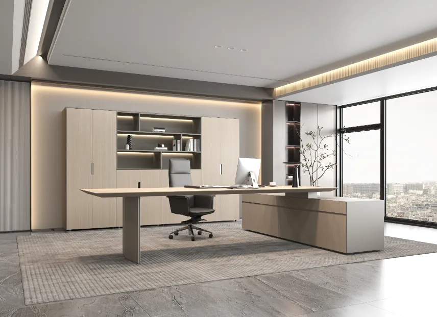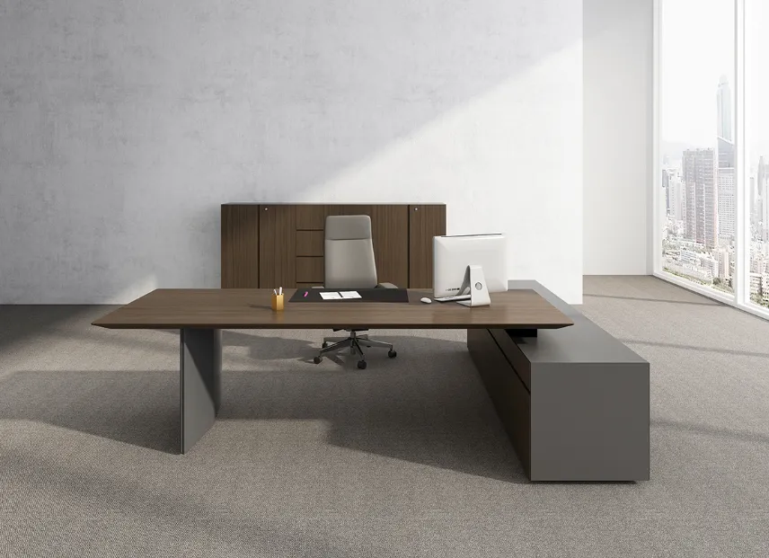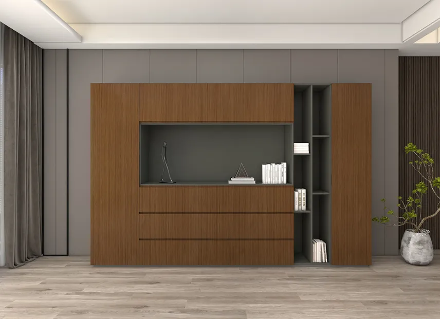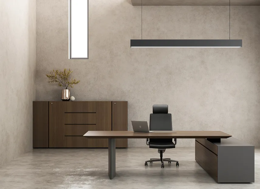 تدمج السلسلة الزمنية تصميم أثاث المكاتب الحديث مع جو عمل عقلاني وأنيق. مزيج من خشب الجوز والأسطح الجلدية السوداء يضيف شعورا من التطور والهدوء ، ومناسبة تماما لأسلوب المديرين المعاصرين. تتميز الخزانة الجانبية للمكتب التنفيذي بأدراج وتخزين وحدة المعالجة المركزية ورفوف مقسمة ، مما يسمح بالتخزين المنظم جيدا. عملي ولكنه مكرر ، يلبي التصميم الاحتياجات المتنوعة للمهنيين عبر الصناعات.