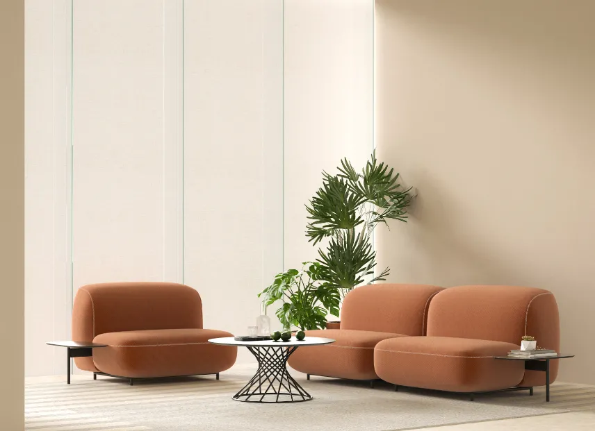تجمع أريكة بريك بين الأشكال المستديرة بسخاء والوظائف المعيارية متعددة الاستخدامات ، مما يضفي جوا طبيعيا ومريحا يشبه المنزل على المكتب. من خلال خلق مساحة للاسترخاء ، فإنه يلهم الإبداع ويرفع المزاج.