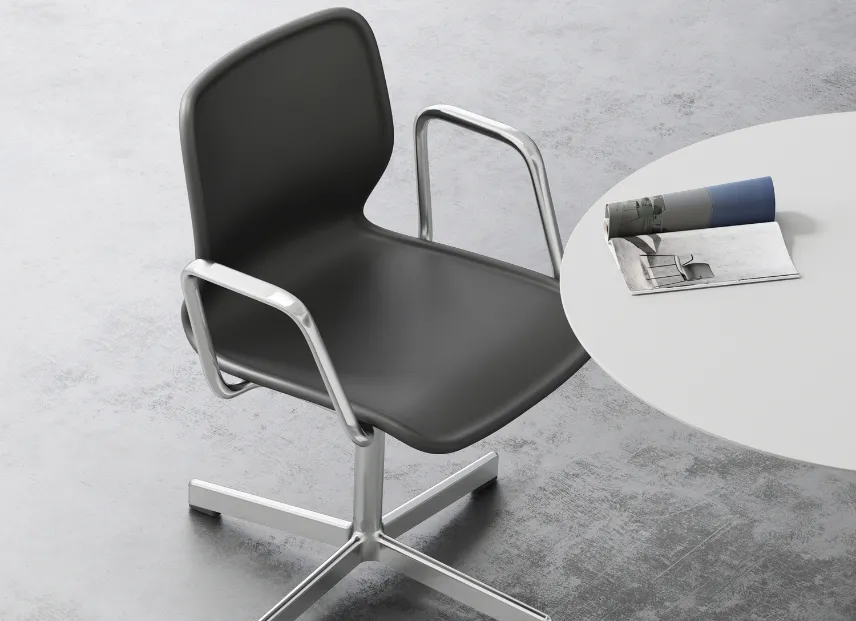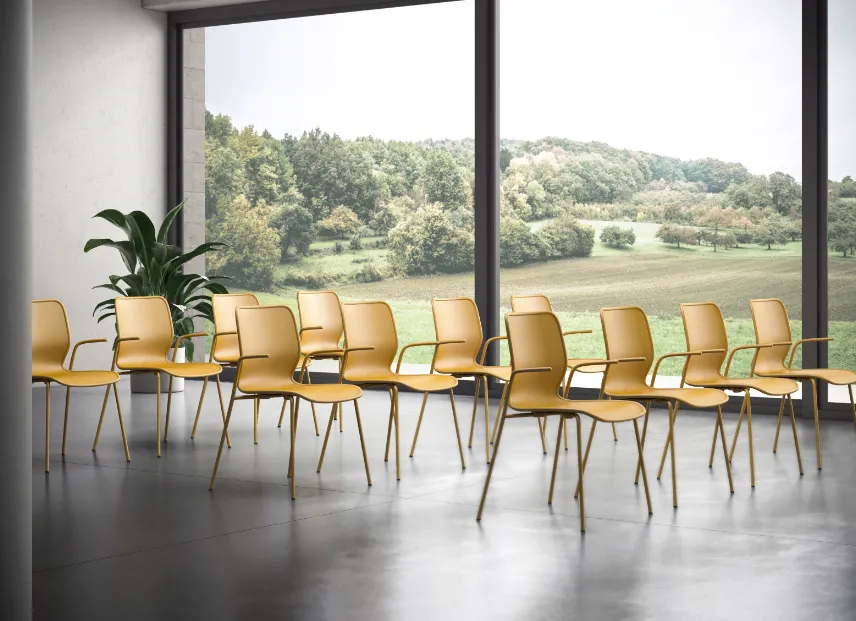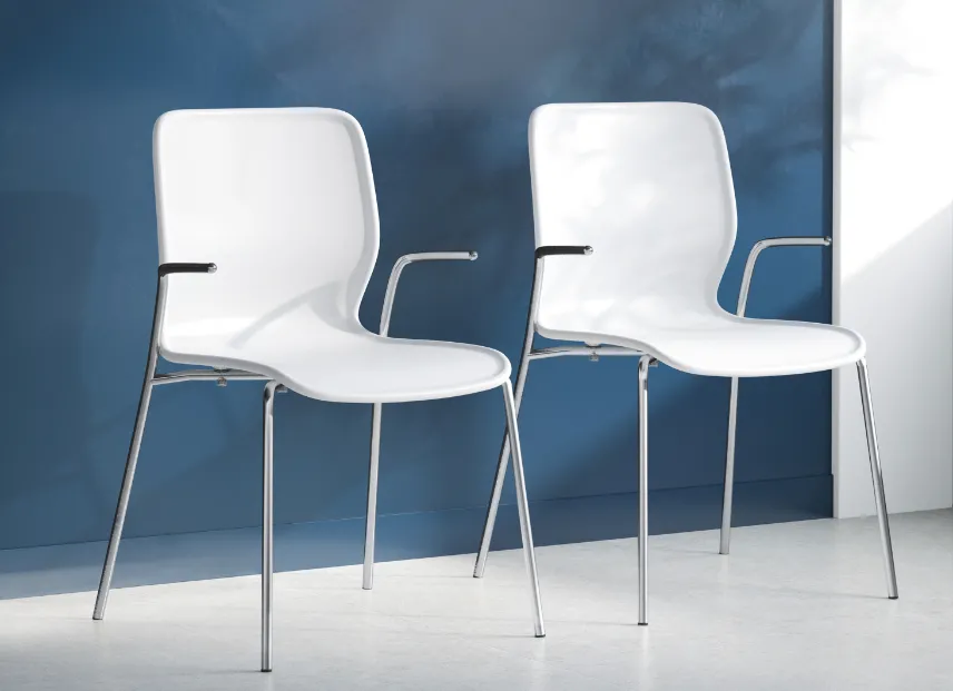 1 design تصميم تعاوني-تم تطويره بالشراكة مع مصمم محلي رائد ، وهو عبارة عن كرسي بلاستيكي متعدد الوظائف مصمم خصيصا للمساحات الحديثة.